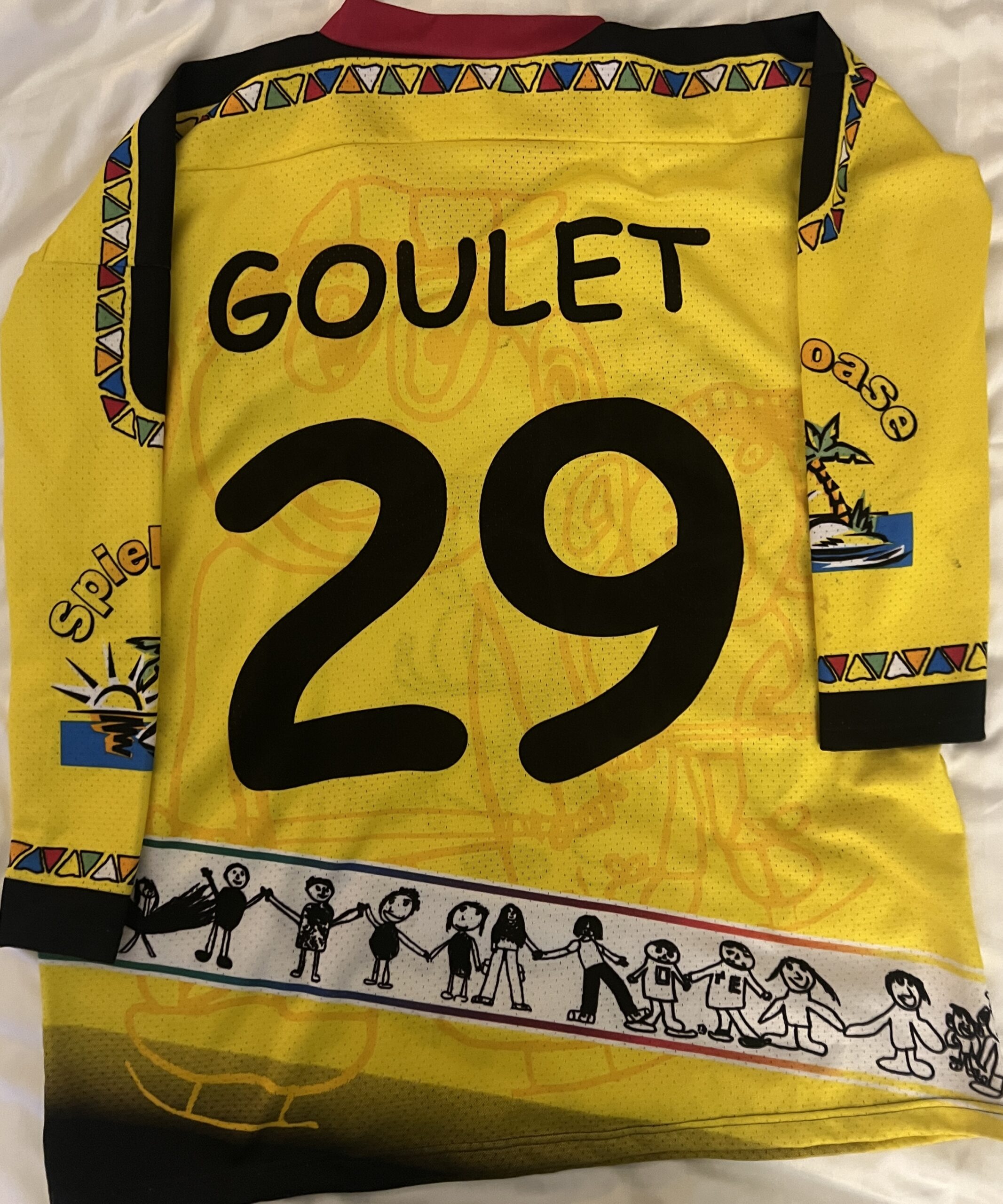 Das ist Christof Stein-schneider von Fury in the Slaughterhouse. Am 17. Dezember trug er dieses Kerry’s Kids Trikot auf der Bühne des Hannover Open Airs. Er ließ es von der Band und CULCHA CANDELA! signieren, um StopConcussions und CONNECTED Mental Health zu unterstützen. Jedem Trikot liegt ein signiertes Exemplar der Kerry’s Kids-CD bei, auf der eine exklusive Version von Hit the Road Jack” von Fury in the Slaughterhouse enthalten ist. Außerdem gibt es “Country Roads”, Lotto King Karl und “Don’t Forget Me When I’m Gone” von Alan Frew, dem Sänger von Glass Tiger!